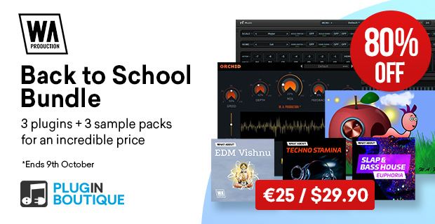W. A. ProductionのBack to School Bundleは、最も人気のある3つのプラグインと3つのボーナスサンプルパックが含まれており、すべて破格の値段で提供されています。