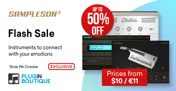 私たちの独占セールで、彼らの最高級のソフトウェア音源のセレクションを最大50%割引で購入できます。