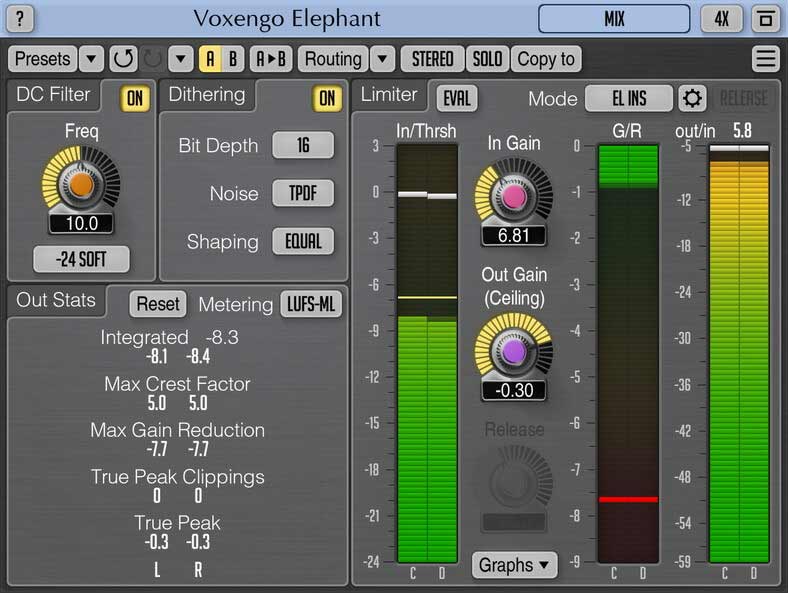 Voxengo Elephantは、プロのサウンドおよび音楽制作アプリケーション向けのマスタリングリミッターAAX、AudioUnit、VSTプラグインです。